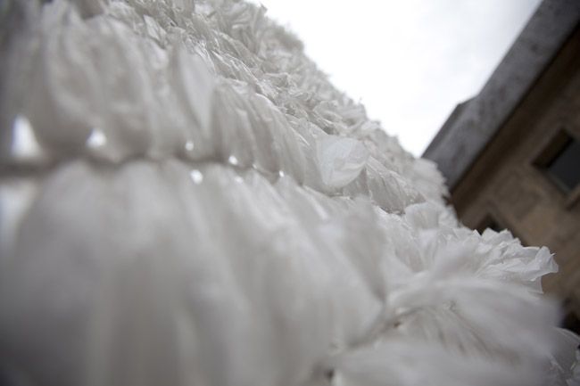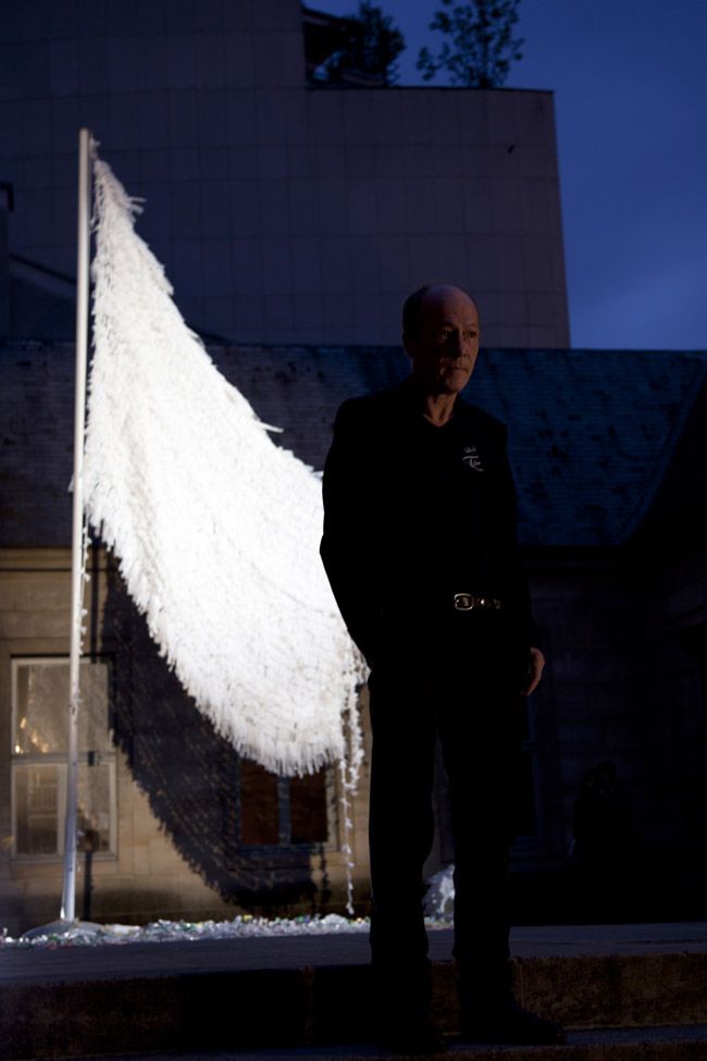 L'artiste Georges-Pascal Ricordeau sculpte des formes à partir de sacs plastiques, glanés au gré de ses déplacements, qu'il tresse jusqu'à en faire disparaître le support. Dans le cadre de Nuit Blanche 2013, l'artiste présente deux formes qui lui sont chères, le drapeau et la vanité. Après avoir fait voyager son « Drapeau Blanc » dans le monde entier1, tel une flamme de la paix, un espoir nomade, l'artiste en propose une version monumentale hissée dans la cour de l'Hôtel Lamoignon, à laquelle fait écho une vanité de grande dimension.
