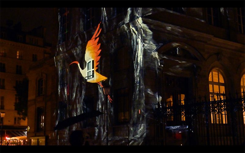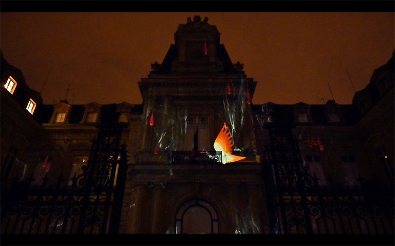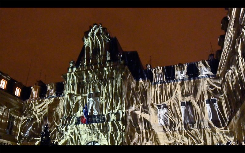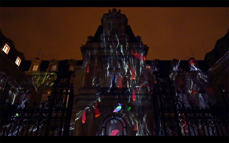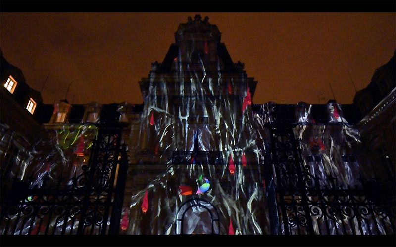 Projeté sur la mairie de Paris Centre, son réseau complexe de racines, tels des milliers de longs doigts ridés, évoque de manière charnelle l’histoire complexe, douloureuse et interconnectée d’une population qui se compte en milliards. En continuité avec la nature environnante du square du Temple - Elie Wiesel, il est comme une fenêtre ouverte sur l'autre côté du miroir : le chant du cygne d'une nature sauvage que nous avons tari et qui nous mord.