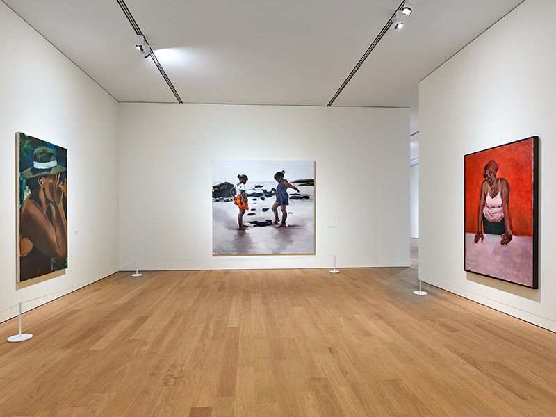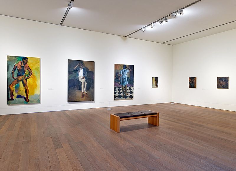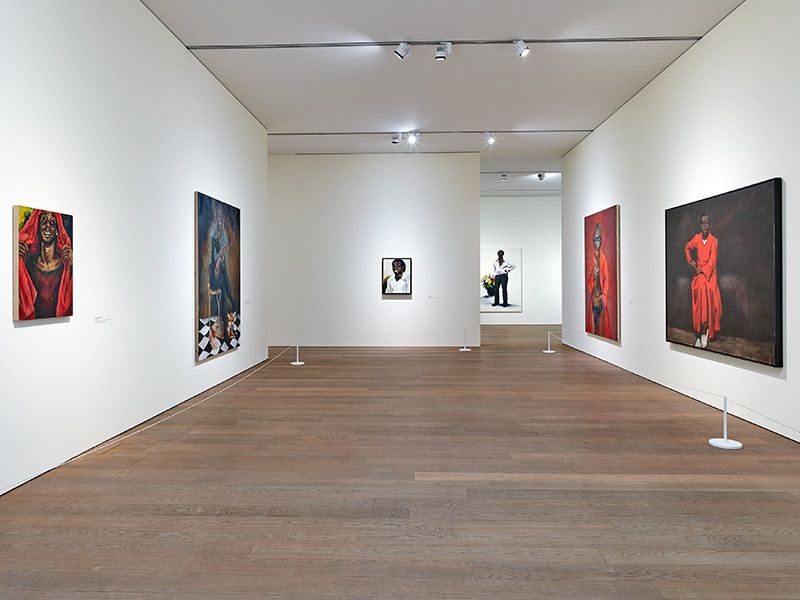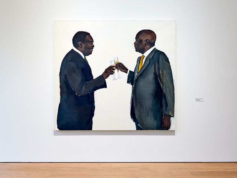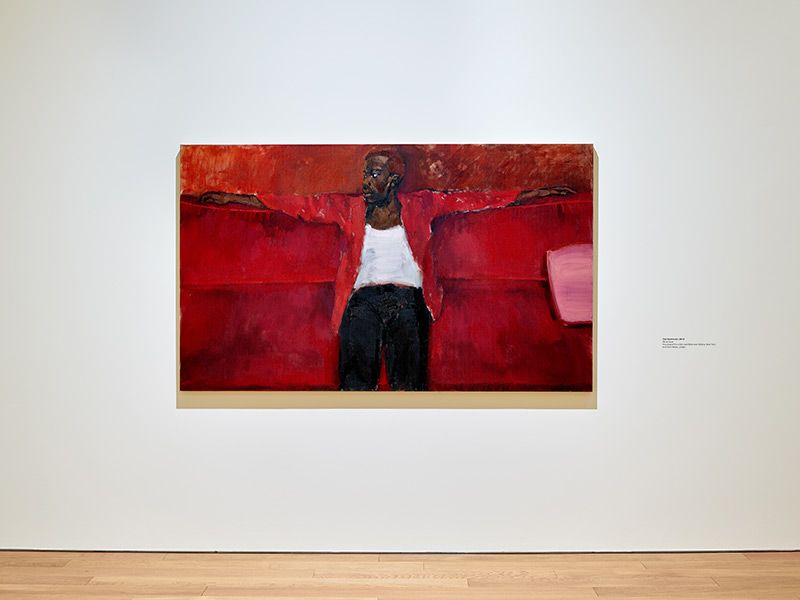 Les personnages des tableaux de Lynette Yiadom-Boakye semblent à la fois familiers et mystérieux. Ses peintures sont composées à partir d’archives hétéroclites d’images trouvées que l’artiste complète en ayant recours à sa propre imagination. Elles sont exécutées avec des traits courts et expressifs, selon une palette où dominent les tonalités sombres et dramatiques. Dépouillés d’indices qui permettraient de les associer à une époque ou à un lieu spécifique, leurs protagonistes semblent exister hors du temps et de l’espace. Les tableaux s’ouvrent ainsi aux récits, souvenirs et interprétations les plus divers.